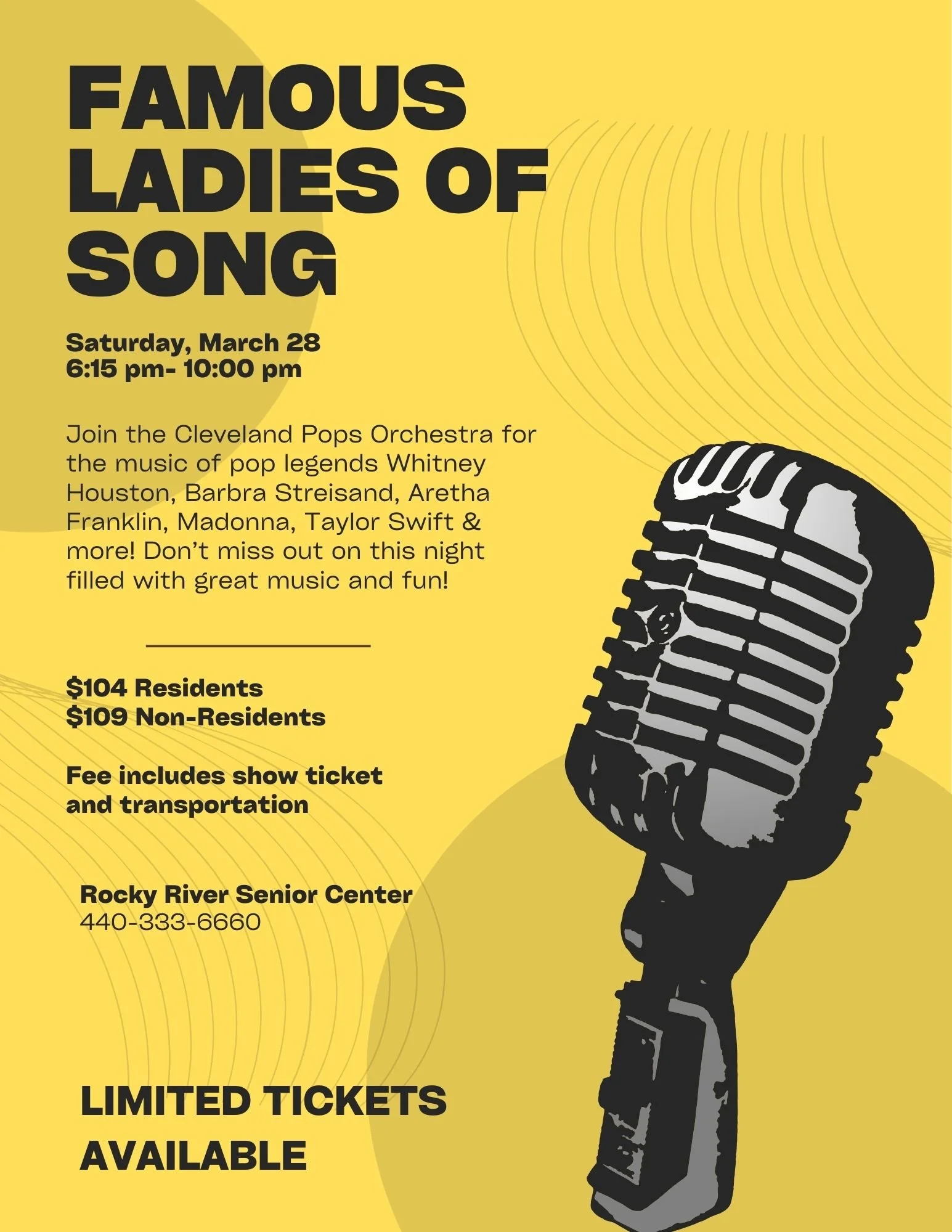 Join the Cleveland Pops Orchestra for the music of pop legends Whitney Houston, Barbra Streisand, Aretha Franklin, Madonna, Taylor Swift & more! Don’t miss out on this night filled with great music and fun!